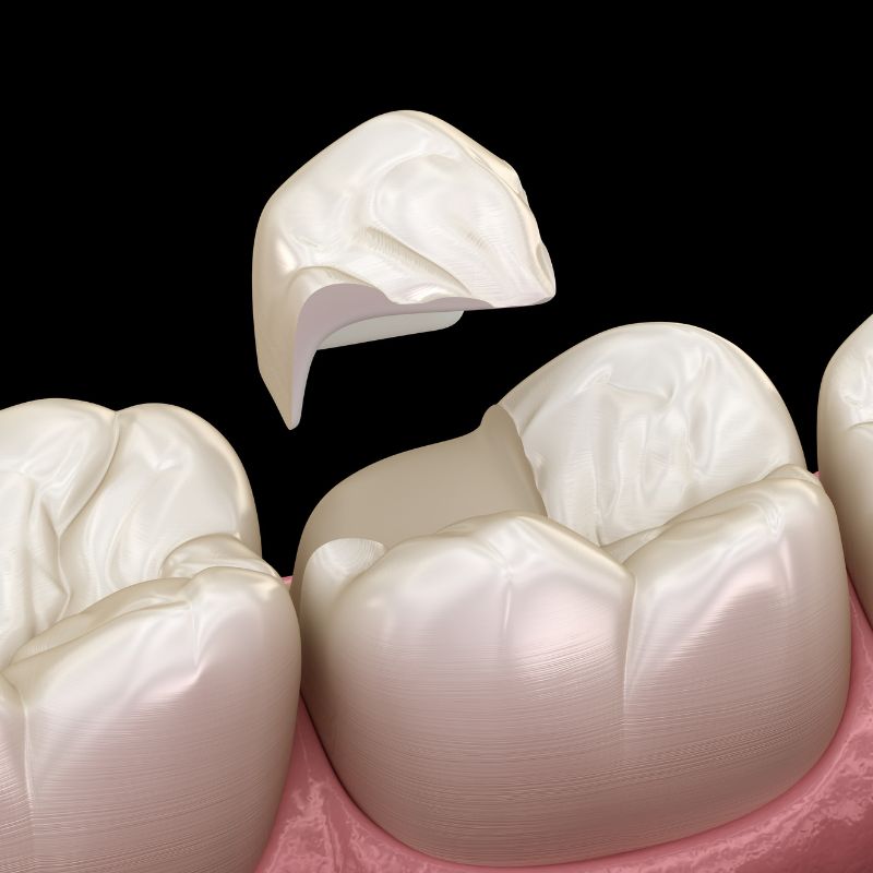 These are alternatives to amalgam or tooth-colored fillings. Porcelain inlays/onlays are individually fabricated pieces designed to precisely fit the excavated and prepared area of a tooth damaged by decay or another injury.
